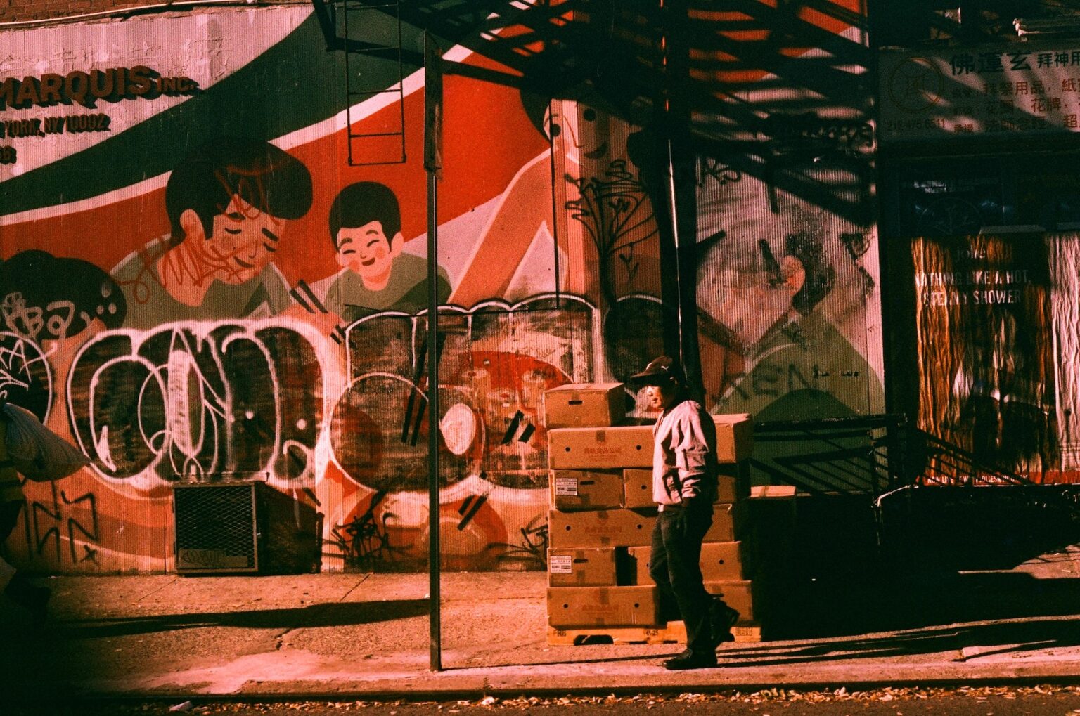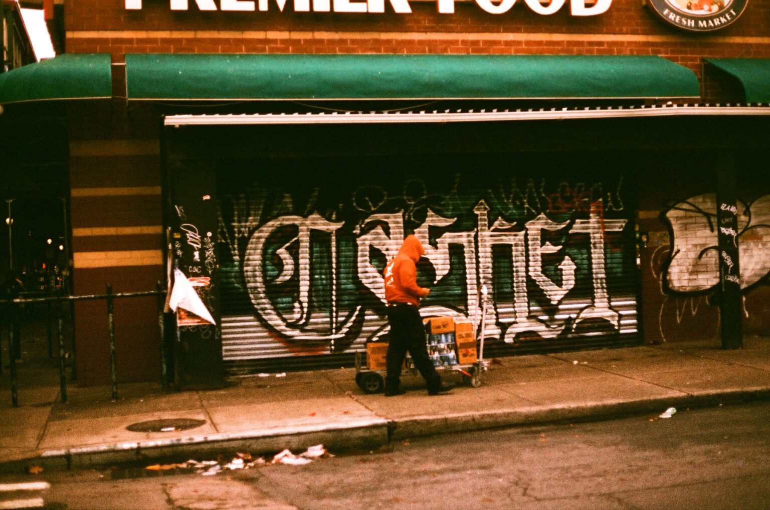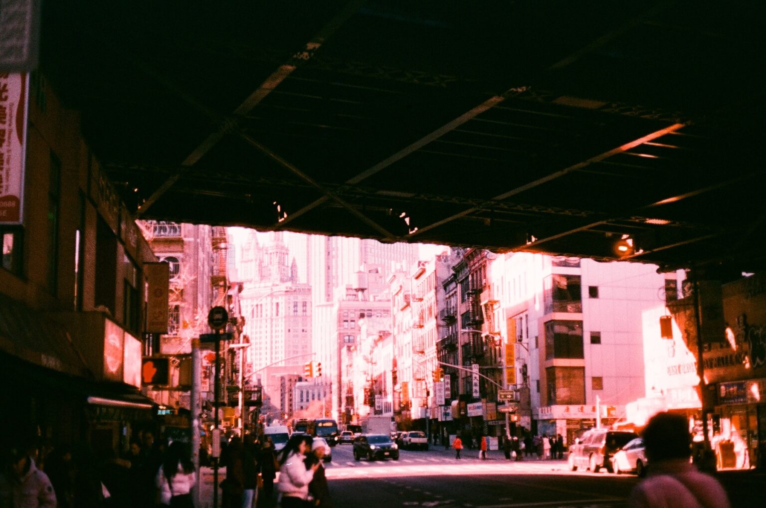 Analogue photographs documenting New York’s streets and architecture as sites of accumulation—of movement, erosion, repetition, and pause. Working with film foregrounds duration and restraint, allowing the city to be registered through material trace rather than instant capture. The images operate between documentation and interpretation, attentive to structure, surface, and incidental human presence. The images observe how the city inscribes itself through everyday use and quiet transformation. What emerges is a measured record of place, shaped by time, process, and the limits of analogue photography.